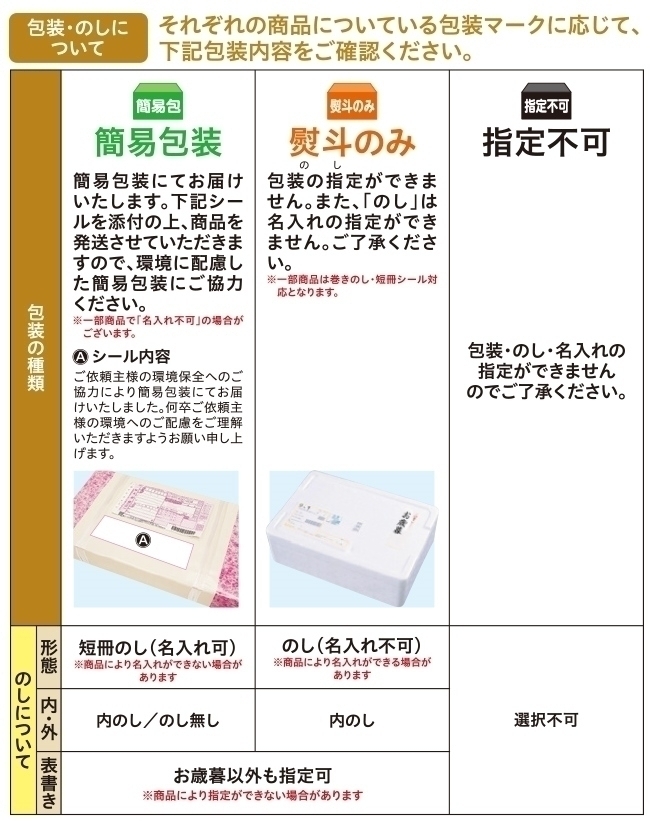 ・お申し込み後の商品キャンセルはご容赦ください。お届け先変更や指定日の変更などもできませんのでご了承ください。