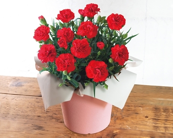 そのまま飾れるバラとカーネーションのブーケ