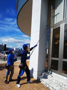 | 窓ガラス清掃はお任せください | 綺麗にするのはまずお店の玄関から! | お客様に気分よく買物してもらいたいです |
